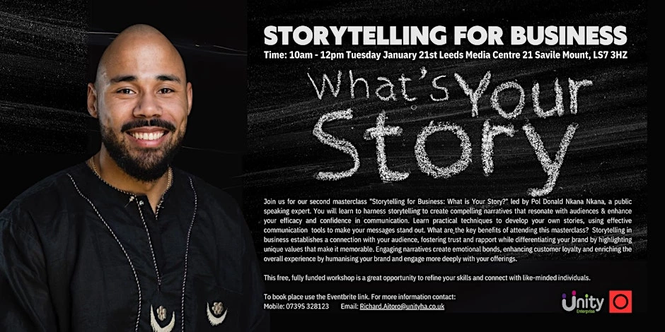 Richard Aitoro, Unity Enterprise Business Adviser: “Storytelling for Business: What is Your Story? will empower those present to develop their own stories using effective communication tools to make their business messages stand out.”